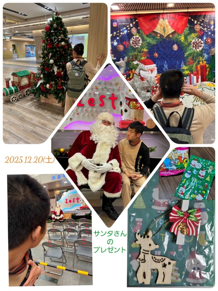 日頃から『サンタさん!』と言われている利用者さん。支援でちょうどサンタさんに会えるイベントがあったので行ってみました。
